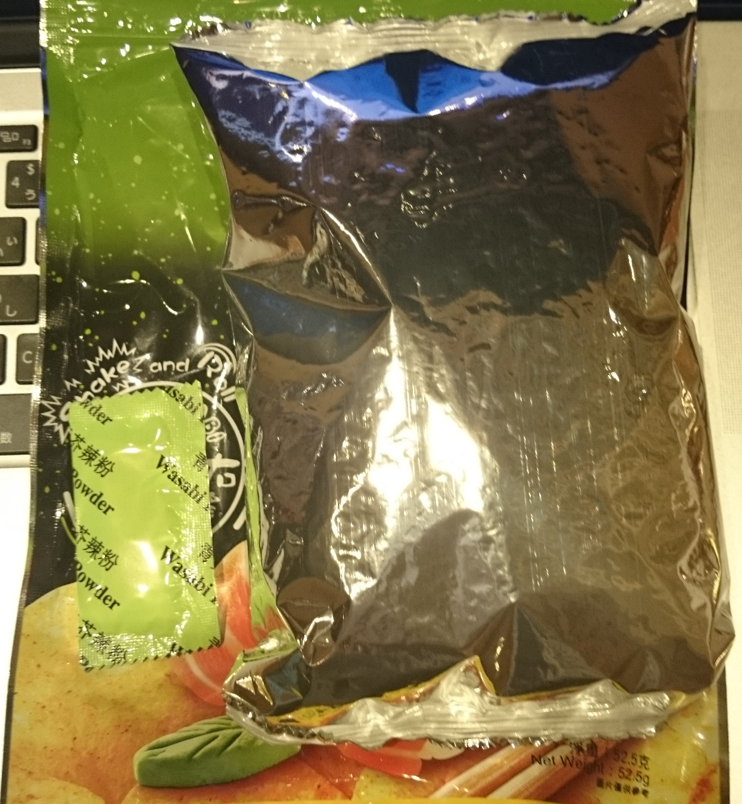 Without wasabi powder, it tastes like an Ebisen. But aftertaste was like Salmon. I couldn’t feel “Sushi” flavour. (Also I don’t know what sushi flavour like…)